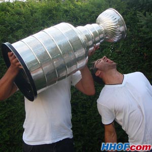 JULY 31 - Maxime Talbot enjoying a drink from the Cup. (Mike Bolt/HHOF)