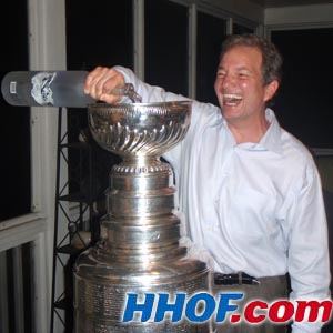 JULY 7 - Ray Shero of the Penguins celebrating with the Cup. (Walt Neubrand/HHOF)