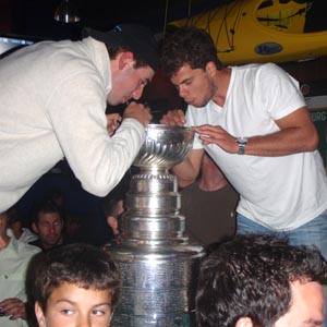 JULY 3 - Tyler Kennedy brought the Cup to Boston Pizza where he celebrated with family and friends. (Walt Neubrand/HHOF)