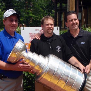 JULY 10 - Former equipment manager of the Johnstown Chiefs Dana Heinze brought the Cup back to Johnstown where some of the Chiefs Alumni got their picture taken with Lord Stanley. (Phil Pritchard/HHOF)