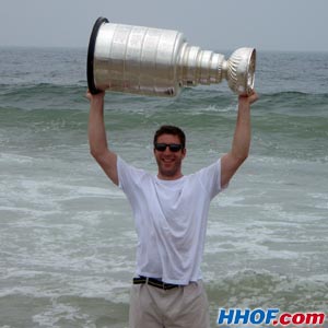 JULY 17 - Rob proudly hoisting the Cup at Lido Beach in Hempstead, NY. (Mike Bolt/HHOF)