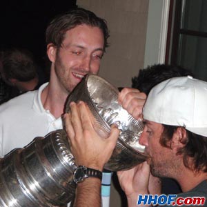 JULY 19 - Brooks Orpik celebrating with family, friends and former teammates from Boston College. (Mike Bolt/HHOF)
