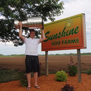 JULY 21 - Jordan Staal brought the Cup to his Dad's Sunshine Sod Farms. (Walt Neubrand/HHOF)