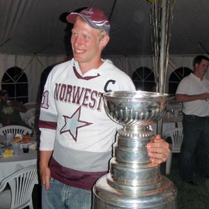 JULY 21 - Jordan Staal poses with the Cup while wearing his old Nor West Minor Hockey sweater. (Walt Neubrand/HHOF)