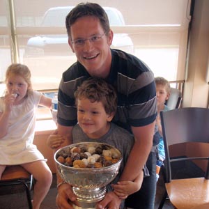 JULY 25 - Matt Cooke and his son Jackson enjoying some Tim Horton TimBits out of the Cup. (Walt Neubrand/HHOF)