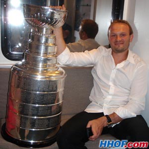 JULY 28 - Sergei Gonchar and the Stanley Cup took the ferry from Fisher Island to Miami for some evening entertainment. (Mike Bolt/HHOF)