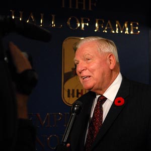 Hockey Hall of Fame Chairman and CEO Bill Hay speaks with the media in the newly renovated and expanded World of Hockey Zone. (Steve Poirier/Hockey Hall of Fame)