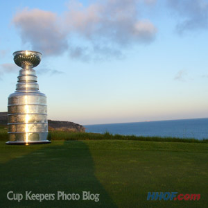 The Cup takes in the spectacular view of the Pacific Ocean. (Mike Bolt/HHOF)