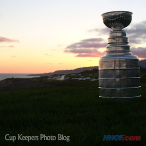 Stanley attempts to finish up on a round of golf as play is suspended due to darkness. (Mike Bolt/HHOF)