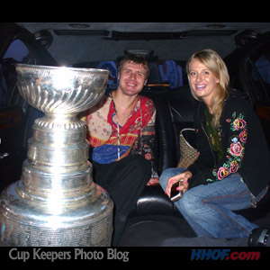 Bryzgalov and his wife Yevgeniya, head into Ilya's hometown of Togliatti, Russia in a limousine. (Walt Neubrand/HHOF)