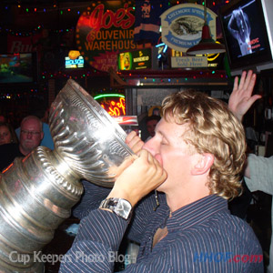 Corey Perry sips from the Stanley Cup yet again. (Mike Bolt/HHOF)