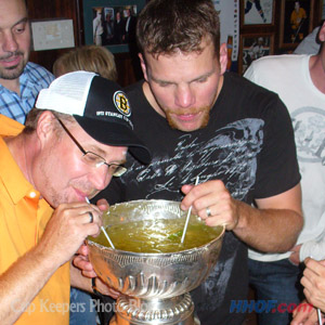 After Thornton found out how many babies were placed in the bowl of the Cup, he was a little hesitant to have his first sip. (Mike Bolt/HHOF)