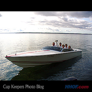 The Carlyle family takes the Cup for a scenic boat tour. (Walt Neubrand/HHOF)