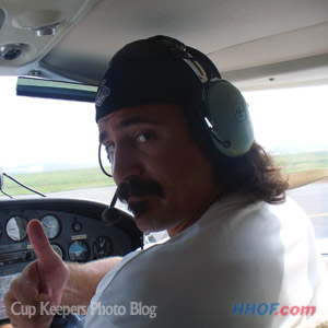 Thumbs up for take off! Parros transports the Cup to his family farm in Washington. (Walt Neubrand/HHOF)