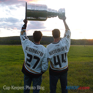 The brothers unite to hoist the Cup, hopefully for the Anaheim Ducks organization, not for the last time. (Walt Neubrand/HHOF)
