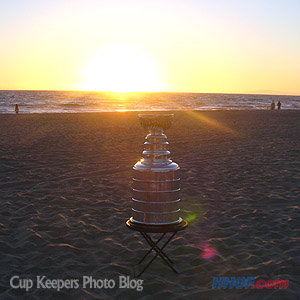 The Samueli's set the Cup for a photo shoot at Newport Beach. (Mike Bolt)