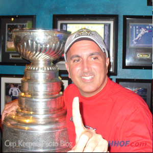 Anaheim Ducks video co-ordinator Joe Trotta celebrated with the Stanley Cup in Manhattan Beach. (Mike Bolt/HHOF)