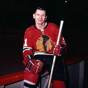 Stan Mikita poses with a smile. His #21 sweater number is retired by the Chicago Blackhawks.