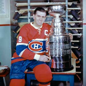 In spectacular colour, Maurice "Rocket" Richard poses with the Stanley Cup following Montreal's 1960 championship.