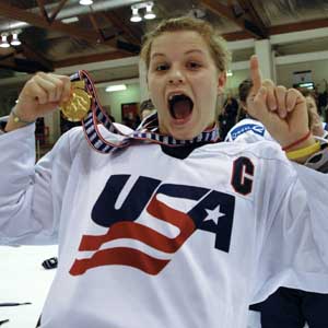 Captain Sarah Erickson celebrates as Team USA won gold at the first ever IIHF World Women's U18 Championship on January 13, 2008.