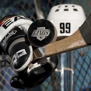 Greatness Measured in Rubber, Aluminum and Leather - Wayne Gretzky's gloves, stick and helmet, as well as the puck he scored with and the net he scored in at LA's Forum on March 23, 1994. (Photo by Matthew Manor/Hockey Hall of Fame)