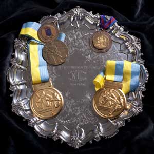 Medals of Distinction - A selection of medals and championship plate awarded to both teams and individuals. (Photo by Matthew Manor/Hockey Hall of Fame)