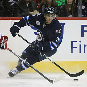 Evander Kane during Winnipeg's home opener on October 9, 2011 at the MTS Centre in Winnipeg, Manitoba, Canada. Montreal beat Winnipeg 5 - 1.