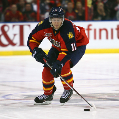 Florida Panthers Jonathan Huberdeau prepares to take a shoot-out attempt. (Ward Benjamin/HHOF)