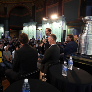 TSN's Gord Miller and the 2014 Inductees take part in the Scotiabank Inductee Fan Forum. (Dave Sandford/Hockey Hall of Fame)