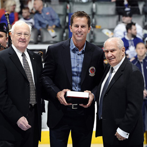 2014 Inductee Mike Modano receives his Honoured Members Blazer and watch prior to the Haggar Hockey Hall of Fame Legends Classic. (Graig Abel/Hockey Hall of Fame)
