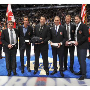 The Induction Class of 2014 at the Haggar Hockey Hall of Fame Legends Clasic.(Graig Abel/Hockey Hall of Fame)