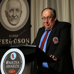 2014 Elmer Ferguson Award winner Kevin Allen speaks at the HHOF/NHL Media Awards Luncheon presented by TSN. (Dave Sandford /Hockey Hall of Fame)