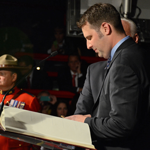 Jason Burns signs the Hockey Hall of Fame Honoured Members book on behalf of his father, Pat. (Scott Veber/Hockey Hall of Fame)