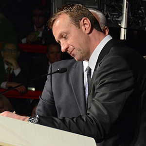 Inductee Rob Blake signs the Hockey Hall of Fame Honoured Members book. (Scott Veber/Hockey Hall of Fame)
