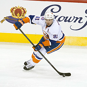 John Tavares surveys the situational landscape during an NHL game on November 14, 2014 at the BB&T Center in Sunrise, Florida, USA. The New York Islanders beat the Florida Panthers 4-3. (Ward Benjamin/HHOF)