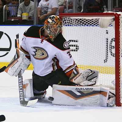Frederik Andersen, #31 of the Anaheim Ducks, a co-recipient (shared with John Gibson) of the William Jennings Award for the 2015-16 NHL season. (Ward Benjamin/HHOF)