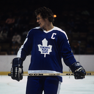 Darryl Sittler #27 of the Toronto Maple Leafs awaits the face off during an NHL game against the Cleveland Barons at the Richfield Coliseum in Richfield, Ohio. (Marvin Axelrod/HHOF)