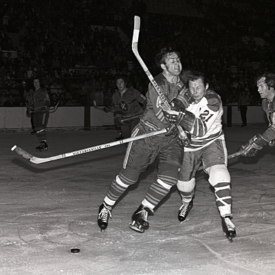 American Hockey League game action between the Cincinnati Swords and the Cleveland Barons at the Cleveland Arena in Cleveland, Ohio. (Marvin Axelrod/HHOF)