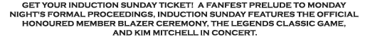 Pre-Game Ceremony! Be a part of the Induction Sunday as the 2008 Inductees Glenn Anderson, Ed Chynoweth, Igor Larionov and Ray Scapinello are honoured with their Official Hockey Hall of Fame Honoured Member Blazer, designed by Hugo Boss. Half Time Show and Post-Game Encore by Canadian rock icon, Kim Mitchell. |